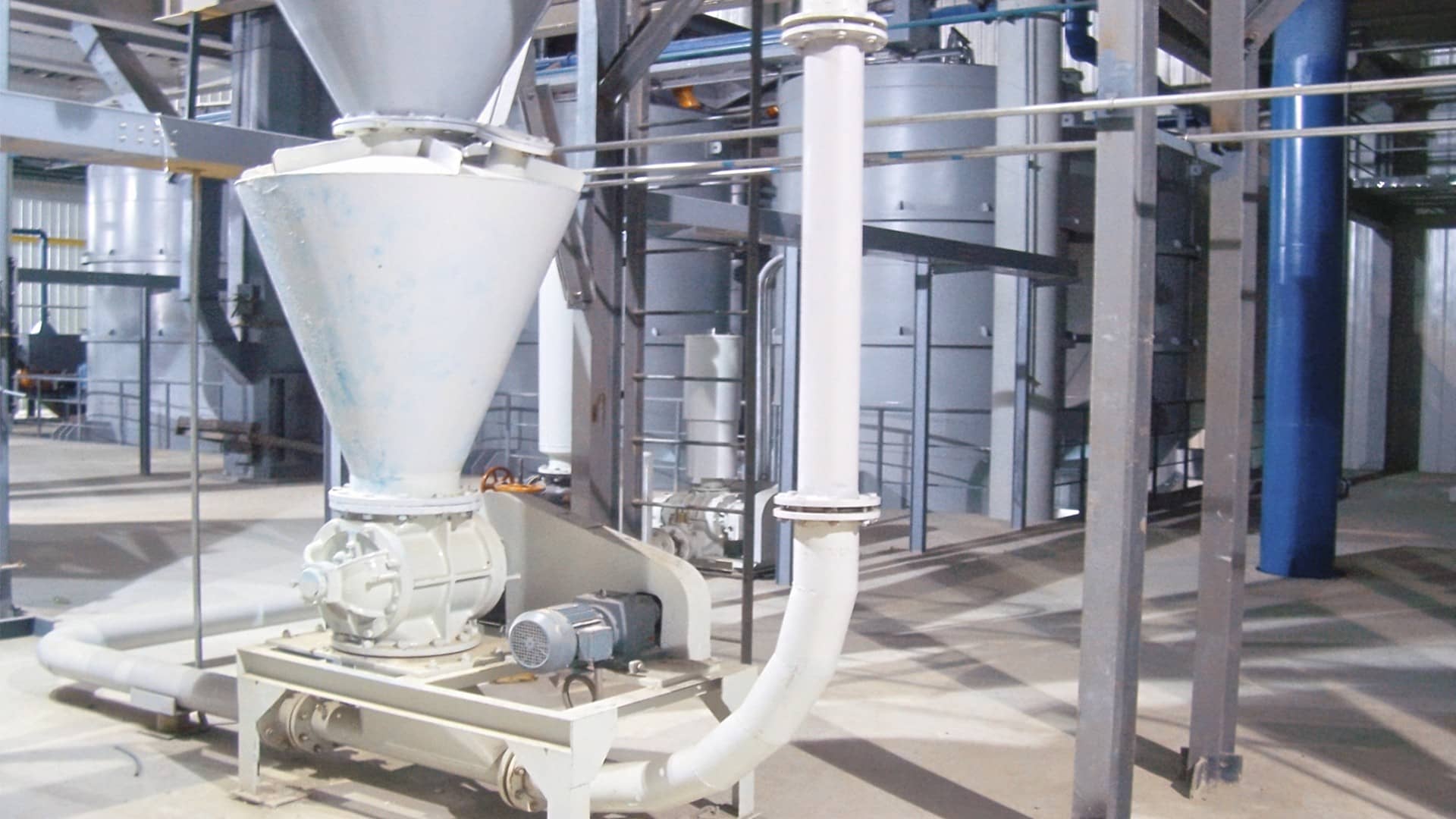 PTFE因其颗粒细小、密度小、流动性好且无明显粘结性,完全适用于气力输送,该输送方式利用压缩空气或真空作为动力源,在密闭管道中形成气流以带动物料,并通过分离器实现气固分离。根据输送压力与动力形式,气力输送可分为负压吸送式、正压压送式和混合式,而气固混合浓度多采用稀相输送,以保证输送效率和物料质量。